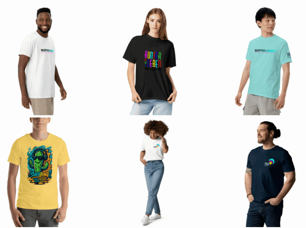 BUNTER:LEBEN Collective steht für einen lebensbejahenden Stil, der Mut zur Farbe und Individualität verkörpert. Unsere Designs sind so vielseitig wie das Leben selbst: mal verspielt, mal minimalistisch, aber immer mit einem positiven Blick auf die Welt. Uns geht es nicht nur um Mode – wir möchten Freude, Kreativität und ein Gefühl von Zugehörigkeit vermitteln.